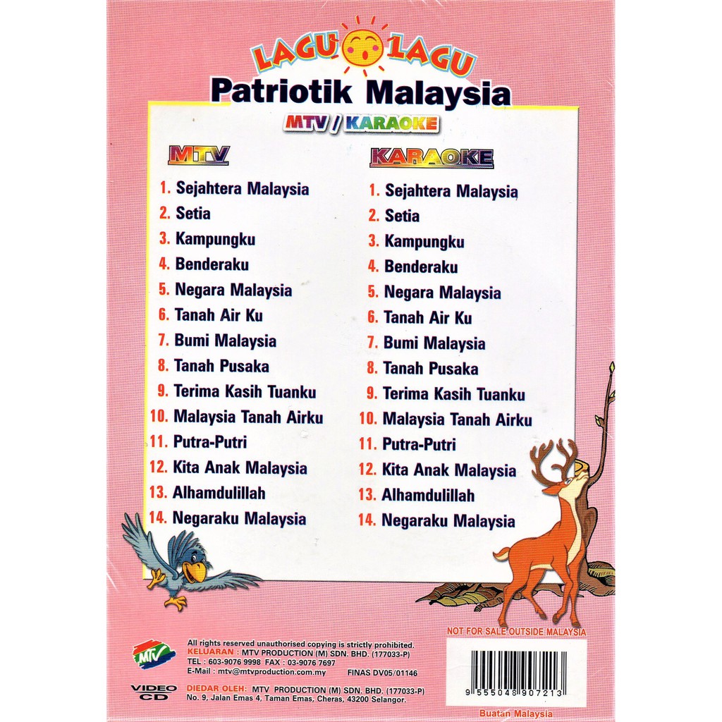 Lagu Lagu Patriotik Malaysia Mtv Karaoke Vcd Shopee Malaysia from cf.shopee.com.my Lagu patriotik malaysia, sehati sejiwa, keranamu malaysia, jalur gemilang satu malaysia. Lagu patriotik koleksi lagu kemerdekaan malaysia 1988 2018 30 tahun. Malaysia tanahairku 4.01 mb 4:23 min. Download lagu lagu patriotik malaysia mp3 dapat kamu download secara gratis di metrolagu. Lagu patriotik koleksi lagu kemerdekaan malaysia 1988 2018 30 tahun. Free malaysia prihatin lirik lagu tema hari merdeka 2020 siti sarah alif satar aina abdul syamel mp3. Lirik lagu dan video klip. Siso lagu patriotik yang sentiasa menjadi kegemaran aku sejak dari dulu.dirgahayu tanah airku.