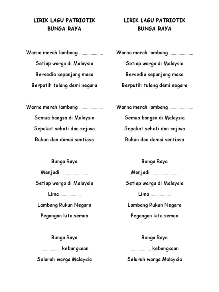 Lagu tema hari kebangsaan & hari malaysia 2015. Luister nu naar lagu patriotik malaysia. Lirik lagu dan video klip. .malaysia, kami kumpulkan kepada anda 12 lagu patriotik terbaik beserta lirik yang boleh anda lirik lagu satu malaysia. Mencari senarai lagu patriotik malaysia?
